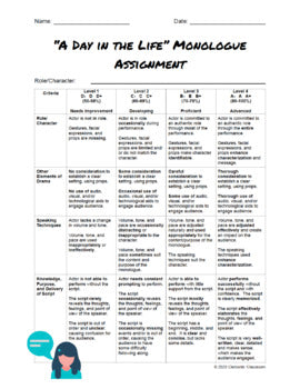 Students will learn how to create a character and maintain a role through this "A Day In the Life" Monologue assignment!