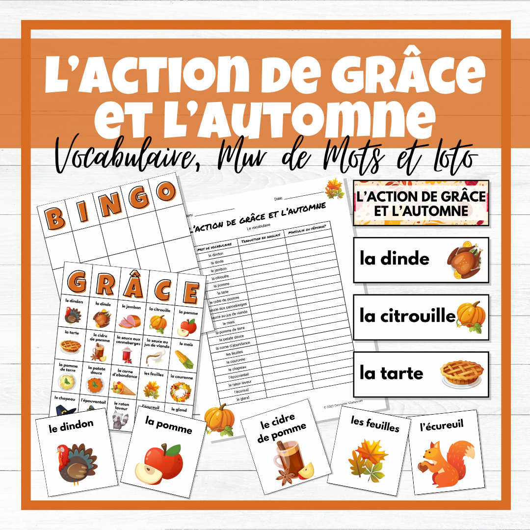 Action de grâce & Automne - French Thanksgiving Fall Vocab, Word Wall & Loto/Bingo