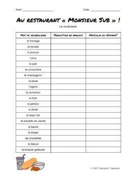 Combined with the other activities available in the « Restaurant Monsieur Sub » Bundle of this store, you will have a strong and fun new unit for your class!