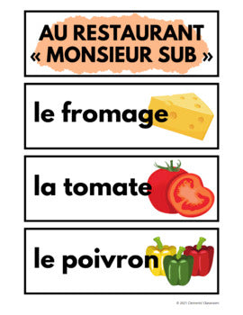 Au Restaurant « Monsieur Sub » - French Vocabulary Activities + Word Wall