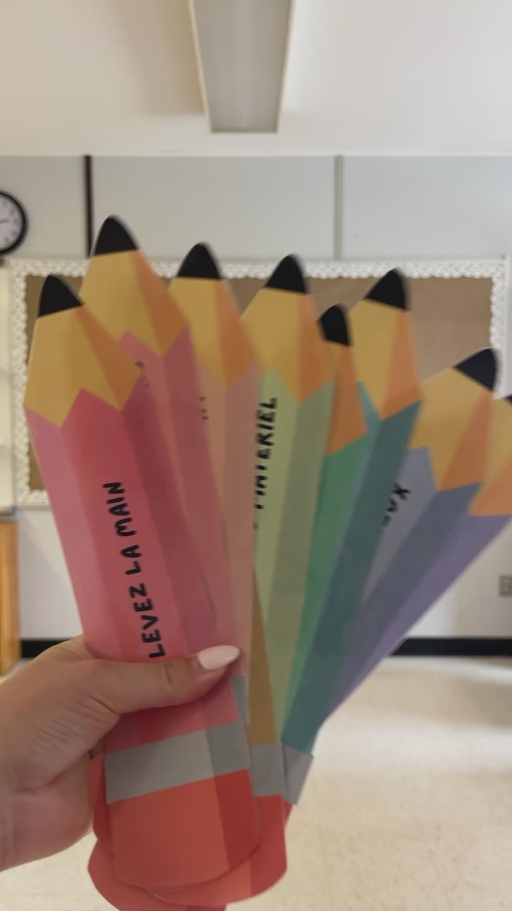 - 9 colourful pencils with classroom expectations and rules written on them in French