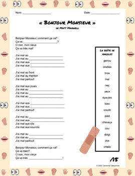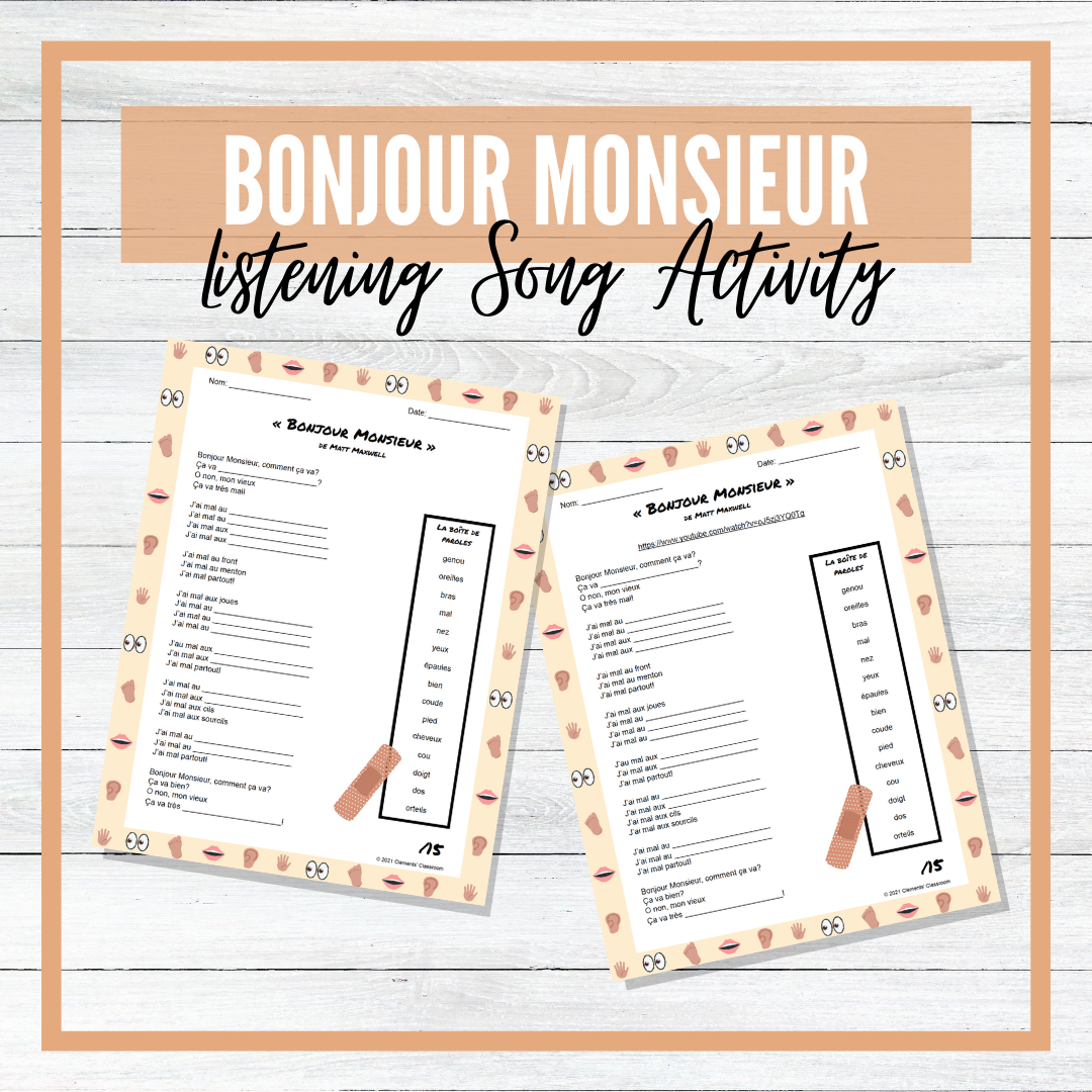 This fill-in-the-blank listening activity to the song « Bonjour Monsieur » by Matt Maxwell is a great way to practice and assess French listening comprehension skills!