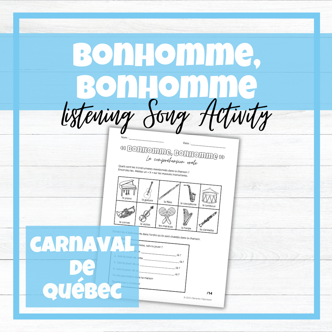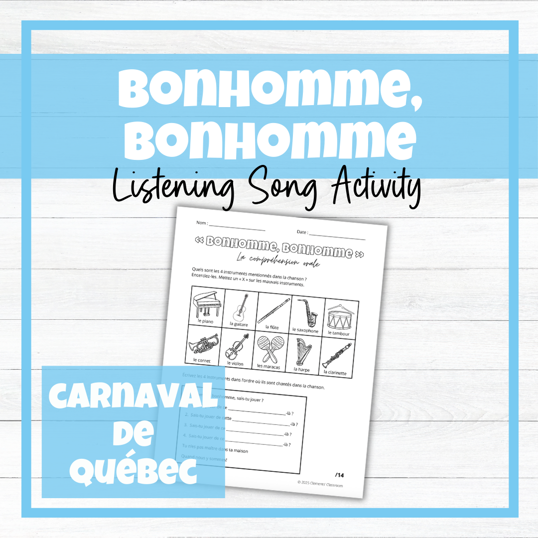 This listening comprehension activity to the famous song « Bonhomme, Bonhomme » is an excellent way to practice and assess French listening comprehension skills, while also celebrating le Carnaval de Québec in your French classroom!