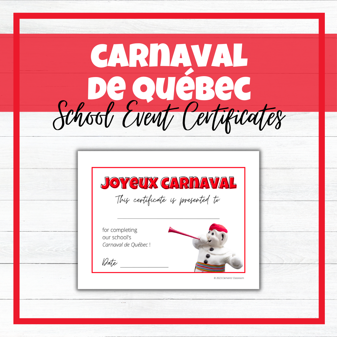 Carnaval de Québec - Festival d'hiver - School Event Certificate of Completion: