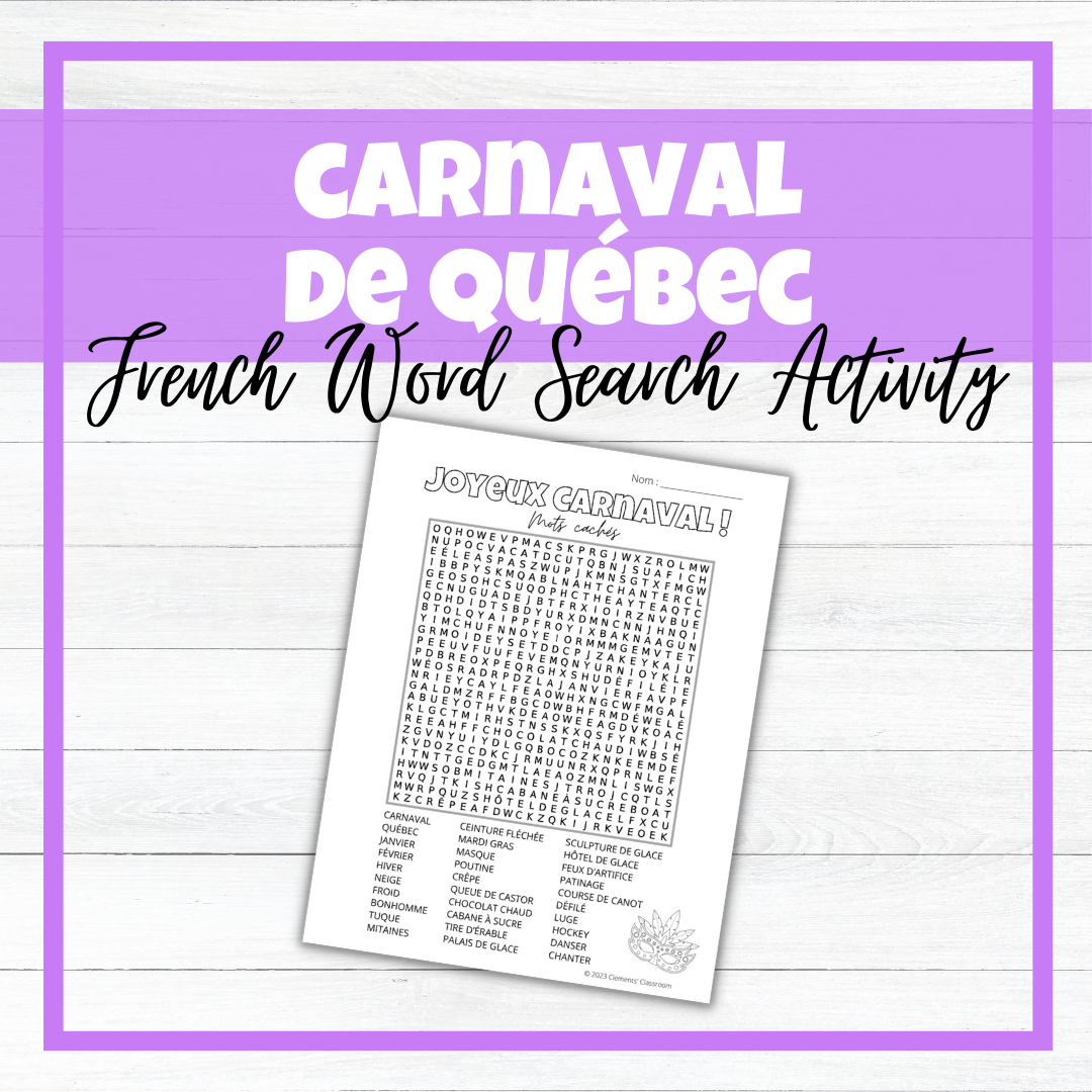I use this word search both in my Carnaval de Québec thematic unit for Grade 5 Core French, as well as during the final period of our school-wide Carnaval winter festival to help the students unwind and relax after a busy day!