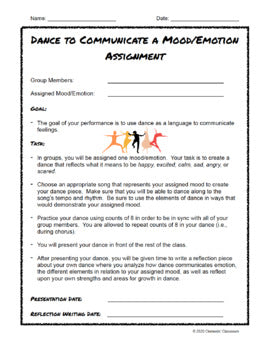 This Dance To Communicate a Mood/Emotion Assignment teaches students to use dance as a language to communicate feelings.