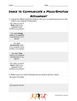 - Elements of dance analysis & strengths/areas of growth worksheet