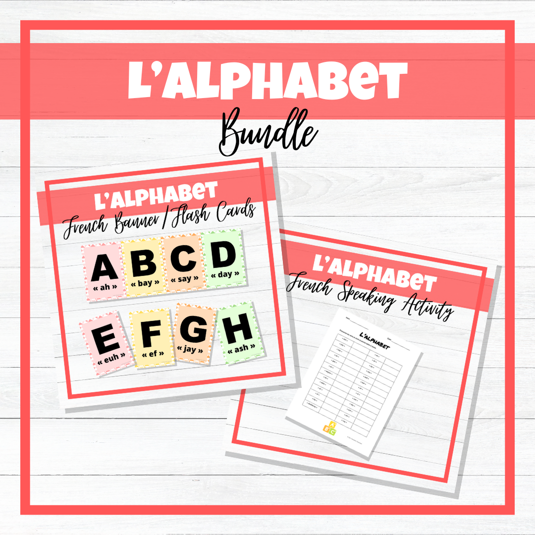 Save 15% off my French alphabet resources when you buy this bundle! This purchase includes 2 resources that are available individually in my store: a French Alphabet Speaking Activity AND a French Alphabet Banner for your classroom!
