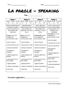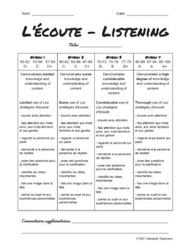 French Rubrics - All 4 Strands - Listening, Speaking, Reading, Writing