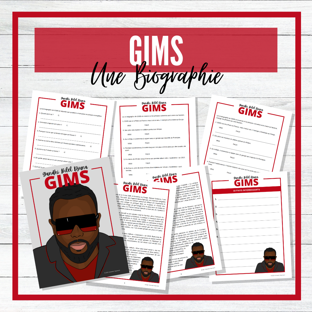 This French biography resource contains informative text about the life of the famous Francophone singer and rapper GIMS (formerly known as Maître GIMS), followed by a variety of activities to build upon and assess your Junior/Intermediate students' reading comprehension and writing skills.
