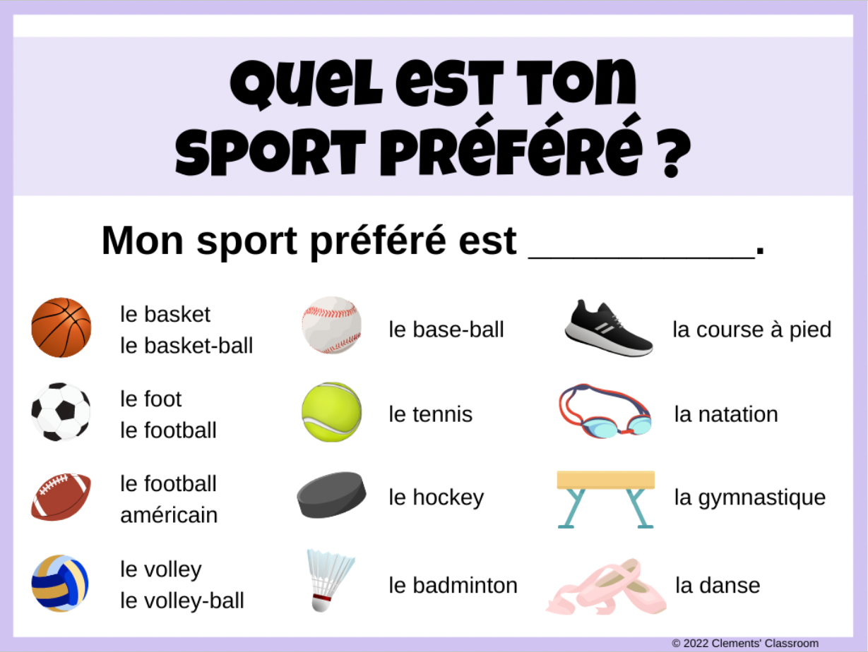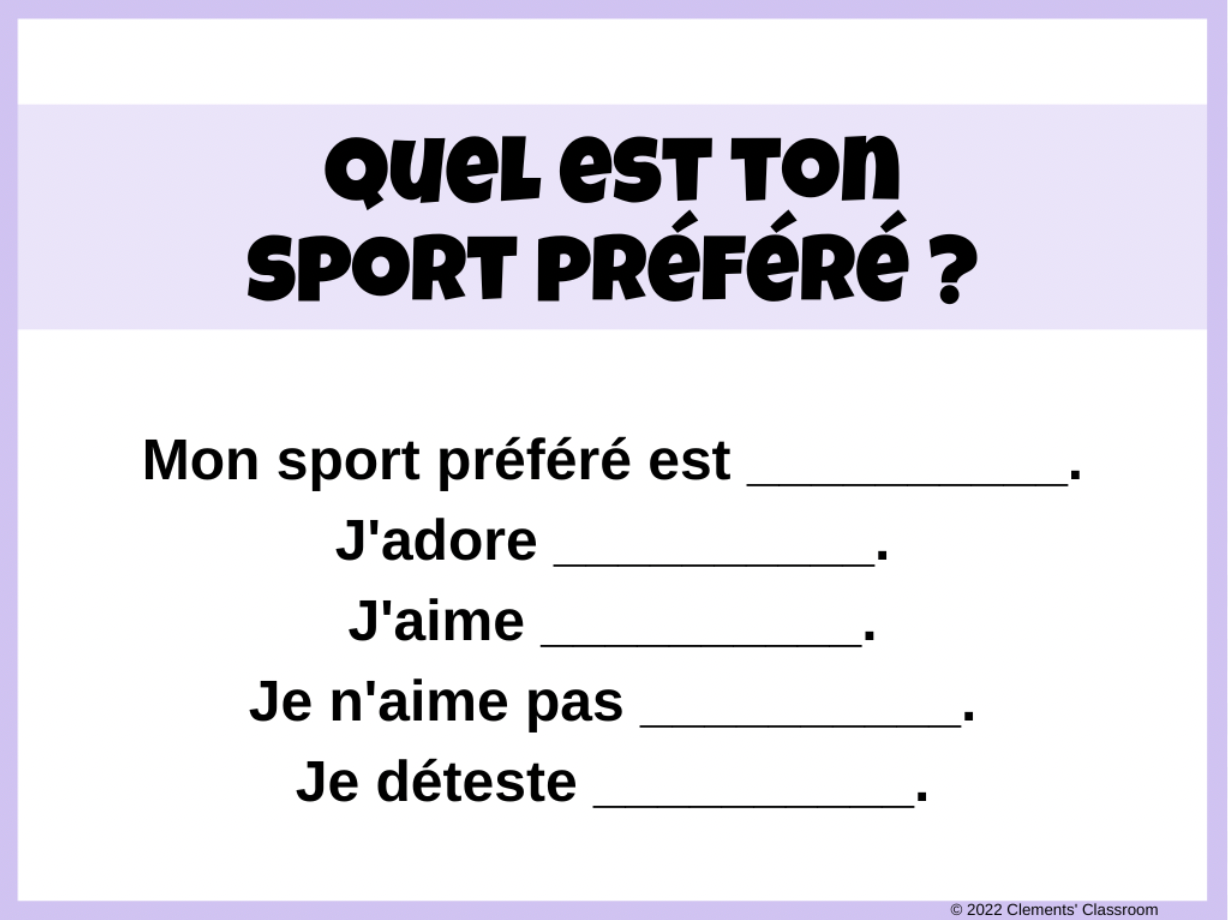 (Please see the three thumbnails above to preview the 3 differentiated versions for the Slide about Quel est ton sport préféré ? )