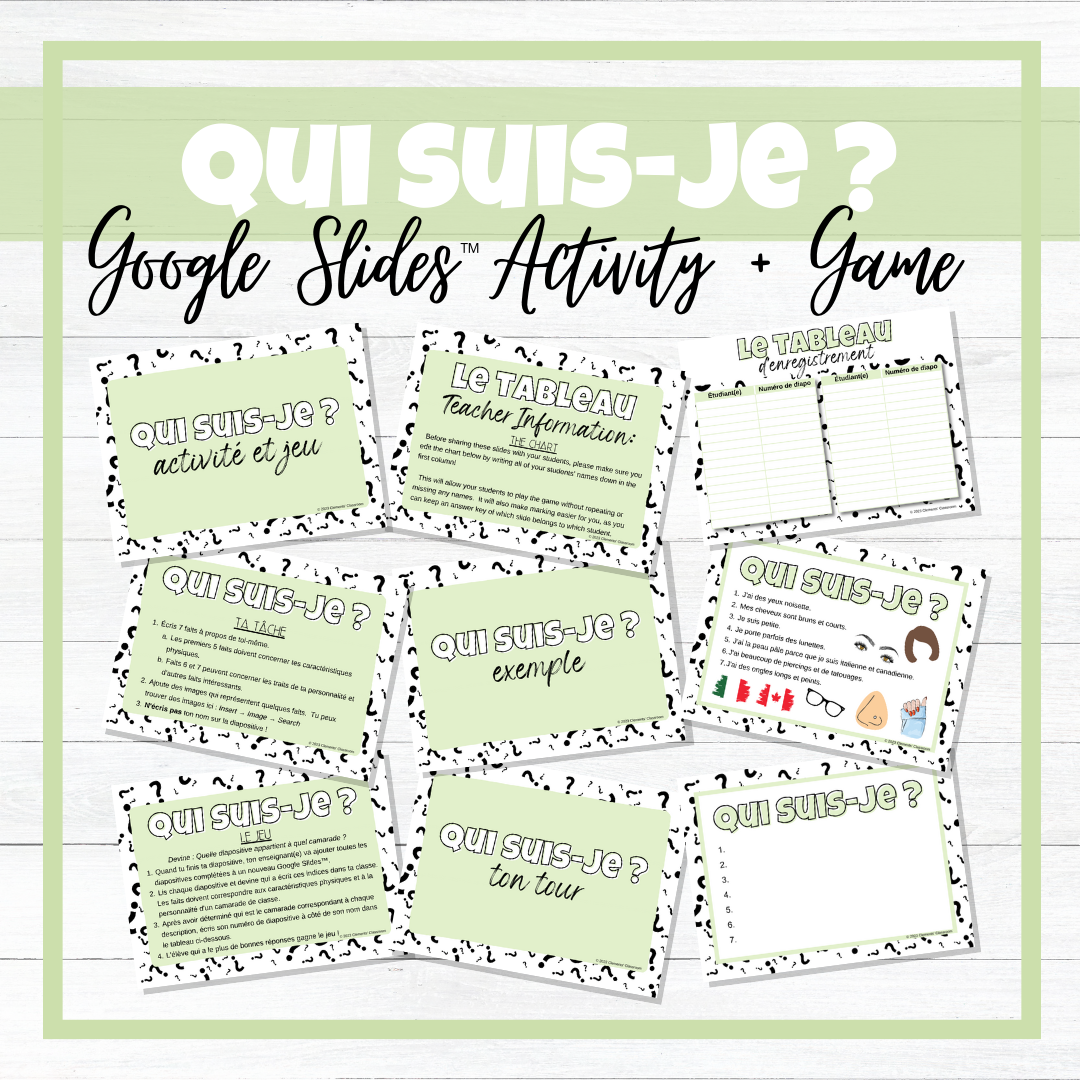 Qui suis-je ? - French Je me présente Google Slides™ Activity & Game: This resource is a fun and authentic way for students to write about themselves in French, and is also a great opportunity for students to practice their reading comprehension skills by understanding information about their peers.