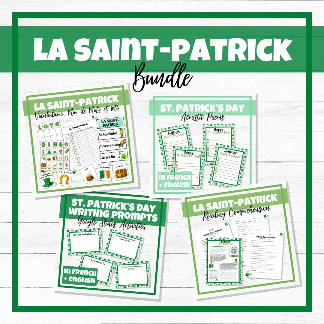 Save 15% off my « La Saint-Patrick » St. Patrick's Day French resources when you buy this bundle! This purchase includes FOUR resources that are available individually in my store: