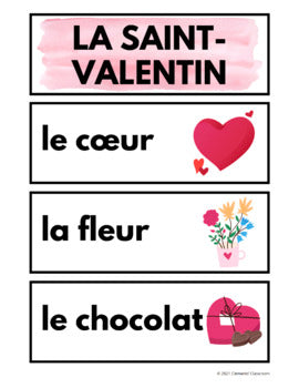 La Saint-Valentin - Valentine's Day - French Vocabulary Activity + Word Wall