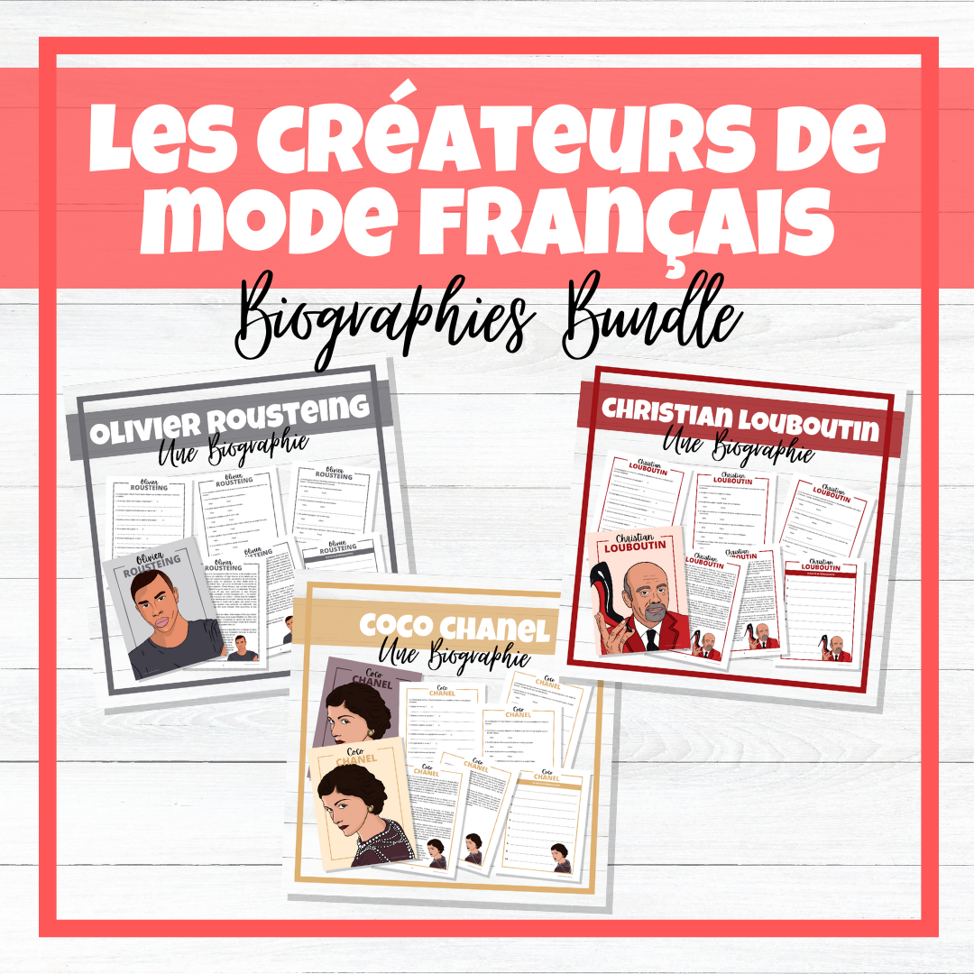 Save 15% off my French Biography Reading activities when you buy this bundle! This bundle includes THREE biographies about famous French fashion designers that are available individually in my store:
