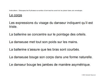 This is a great addition to other Elements of Dance resources that are available in the Dance section of my store, including the Les éléments de la danse - French Elements of Dance Lesson and Note and the Analyse des éléments de la danse - So You Think You Can Dance French Analysis resources.