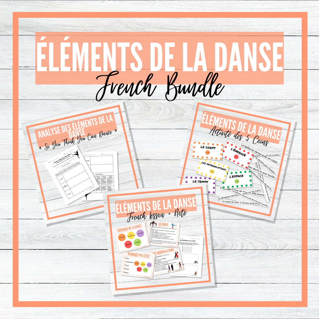 Save 15% off my FRENCH Elements of Dance resources when you buy this bundle! This purchase includes 3 resources that are available individually in my store: a Les éléments de la danse - French Elements of Dance Lesson and Note, a Les éléments de la danse - Activité des 5 coins - French Dance Activity AND an Analyse des éléments de la danse - So You Think You Can Dance French Analysis!
