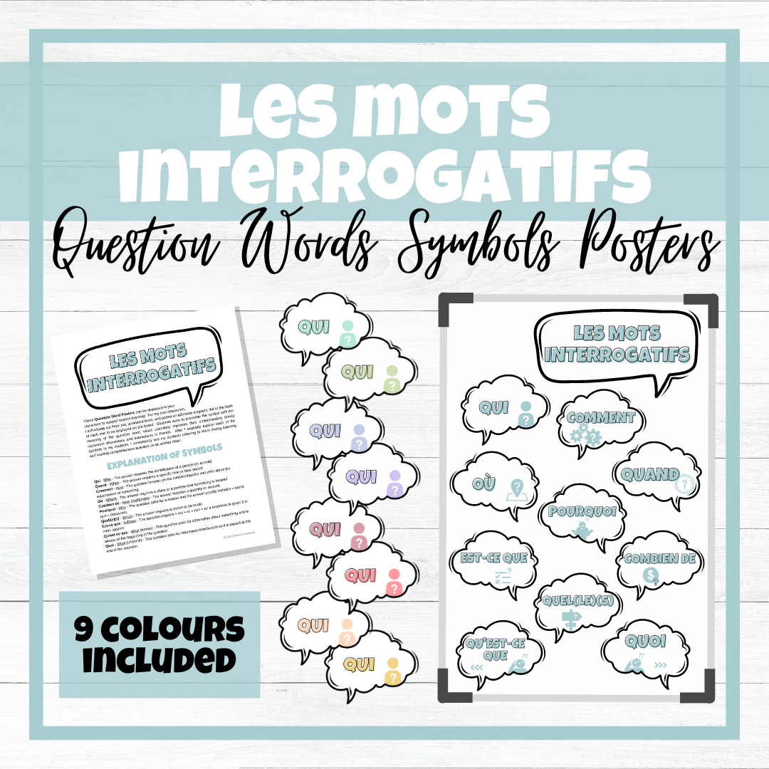 Included are the following 10 question words, with a symbol to represent the meaning of each word, along with an explanation of each symbol to help you teach les mots interrogatifs to your students: