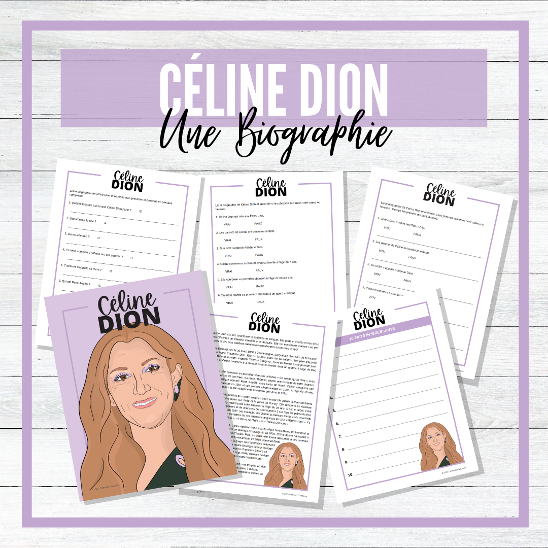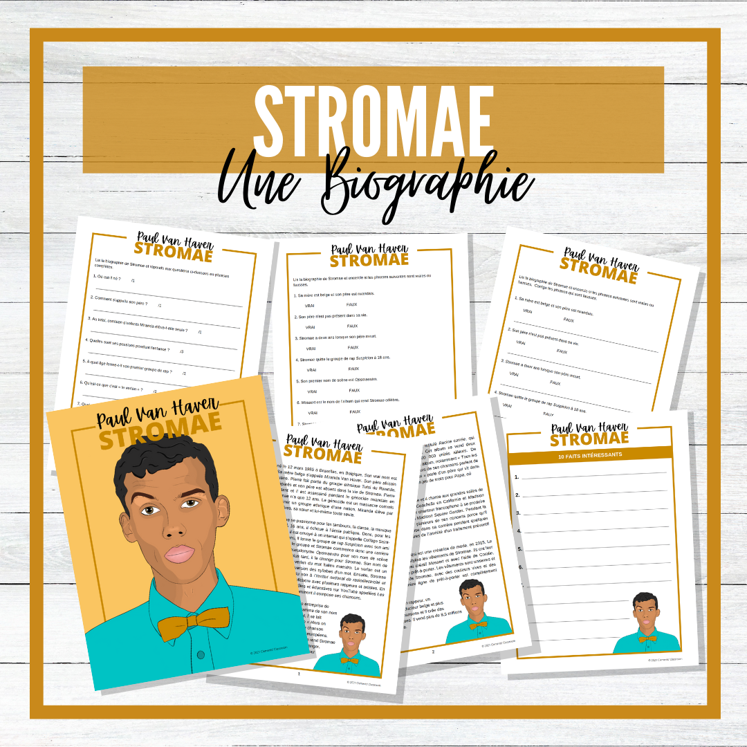 Save 15% off my French Biography Reading activities when you buy this bundle! This bundle includes FOUR biographies about famous Francophone musicians and artists that are available individually in my store: