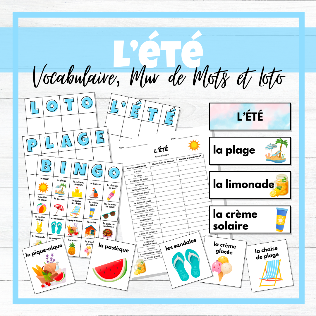 L'été - French Summer Vocabulary, Word Wall & Loto / Bingo