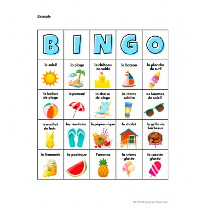 This Loto d'été Bingo game is an excellent way for your students to develop their French vocabulary!