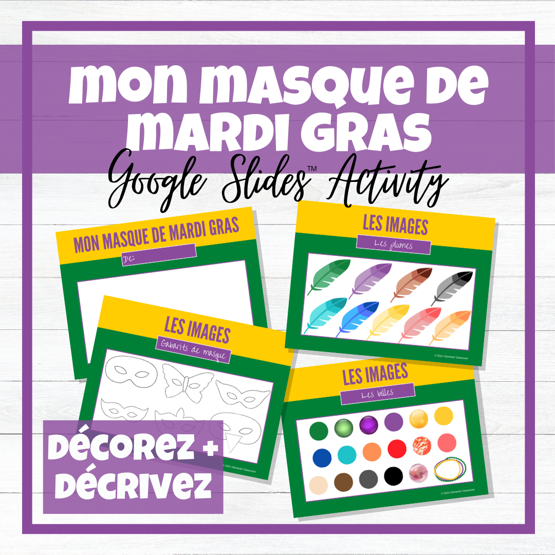 Celebrate Mardi Gras in your French Classroom by having your students design and decorate a mask digitally using this Mardi Gras Google Slides™ Activity!