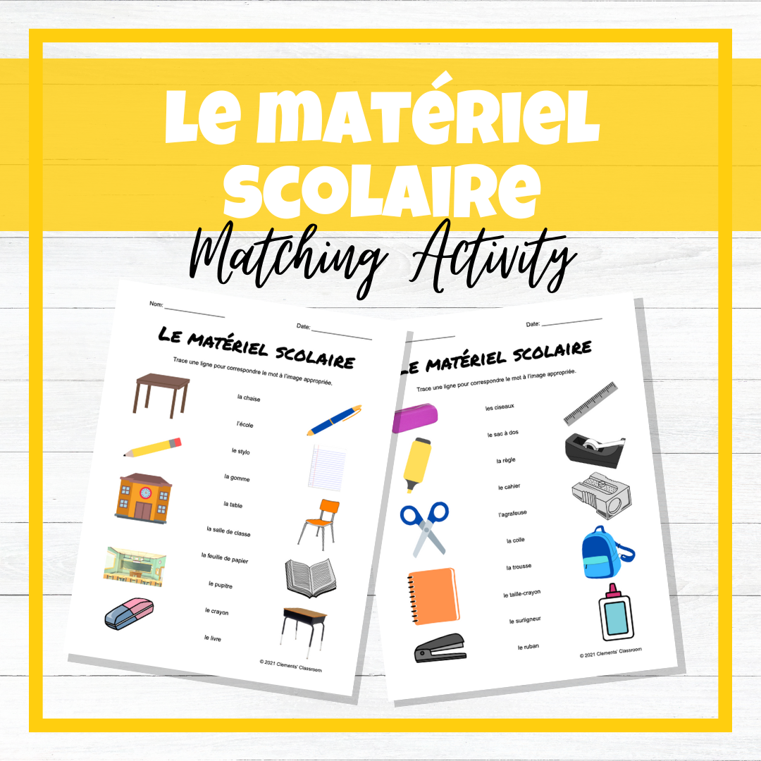 Matériel Scolaire - School Supplies - Matching Activity: This matching activity is an excellent tool to assess the progress of student learning in the middle of your « Matériel Scolaire » unit! Students have to match the vocabulary word with the correct image. This resource includes the activity, as well as an answer key to help you with grading easily.