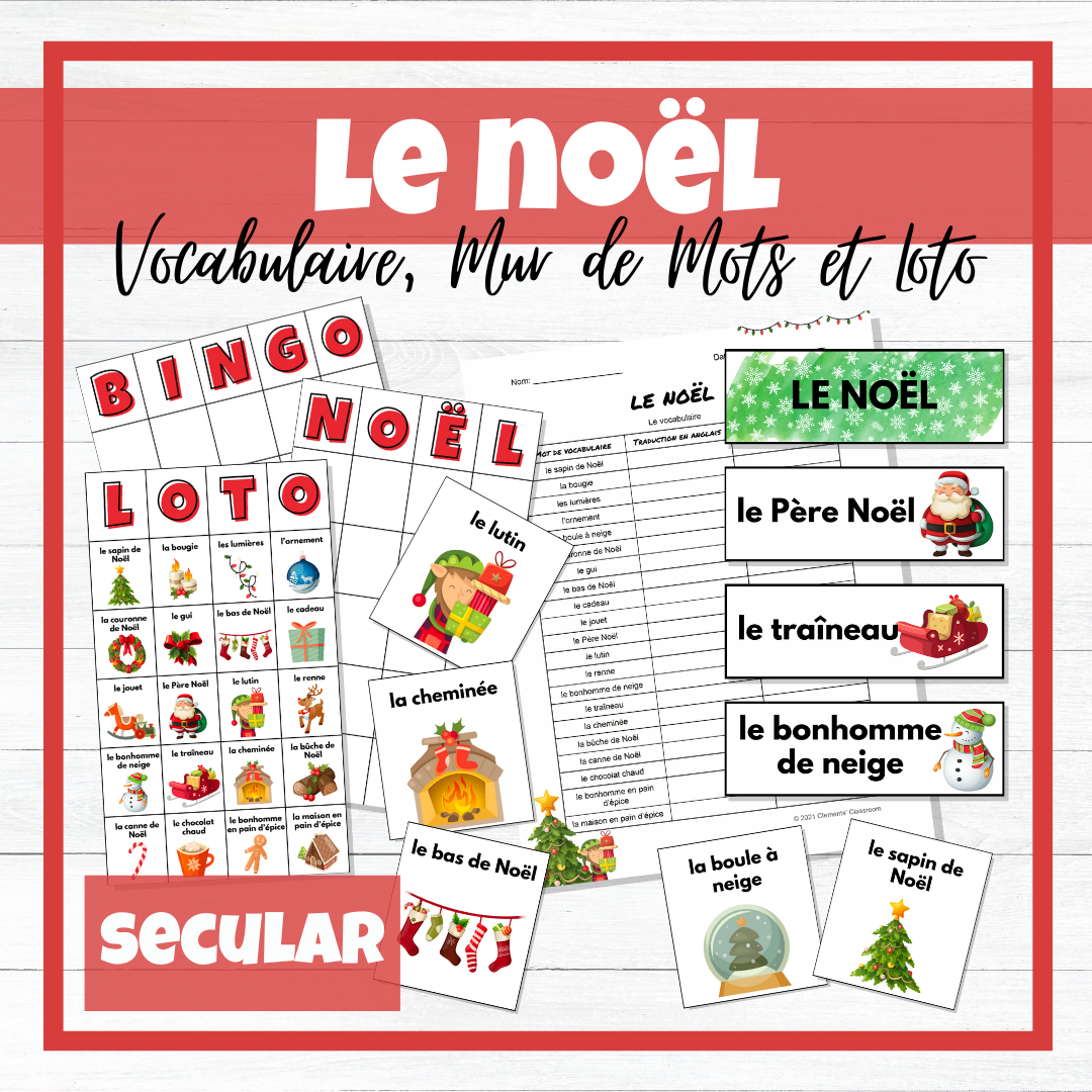 Begin your secular Christmas unit in French with this vocabulary activity, Word Wall, and Loto / Bingo activity!