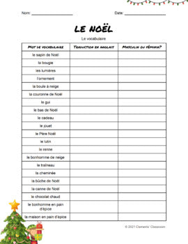 This product consists of 21 vocabulary words related to Le Noël, where students will practice their dictionary skills by not only finding the English translation, but also discovering if the word is masculine or feminine. An answer key is included.