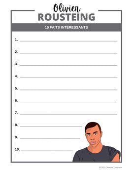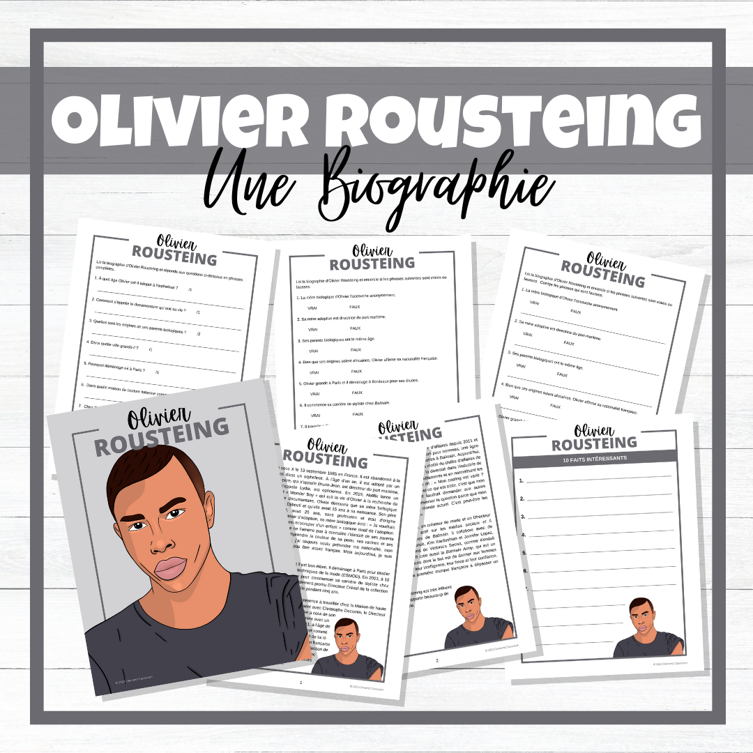 This French biography resource contains informative text about the life of the famous French fashion designer Olivier Rousteing, followed by a variety of activities to build upon and assess your Junior/Intermediate students' reading comprehension and writing skills.