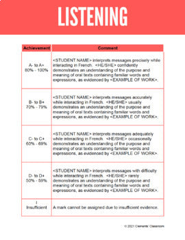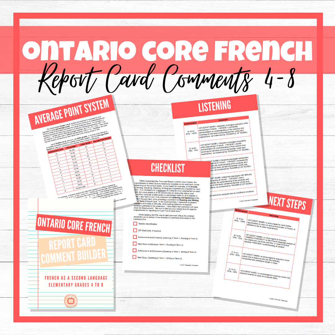 Ontario CORE FRENCH Report Card Comment Builder - FSL Elementary Grades 4 to 8