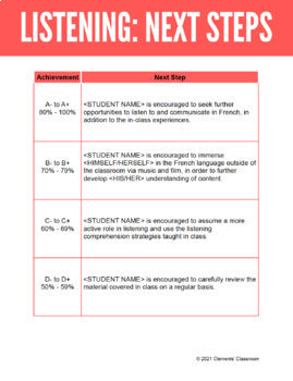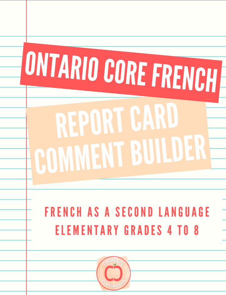 Whether you are a first year Core French teacher who has never written report cards before, or an experienced Core French teacher who wants to improve or freshen up their comments, this comment builder is right for you! It will save you so much time and make the writing process that much easier!