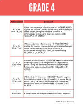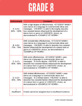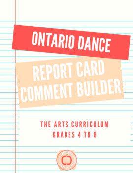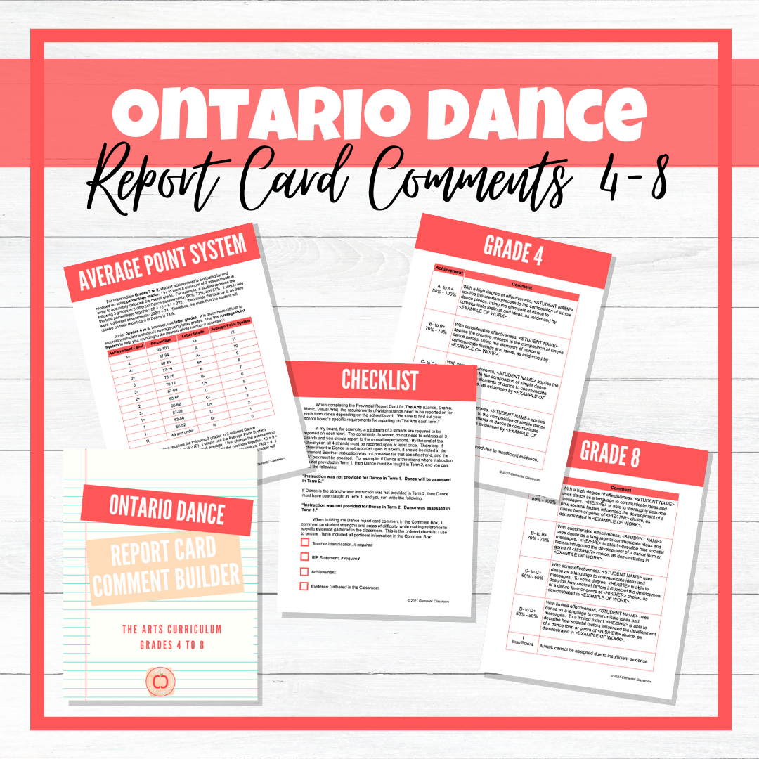 Ontario DANCE Report Card Comment Builder - Grades 4 to 8