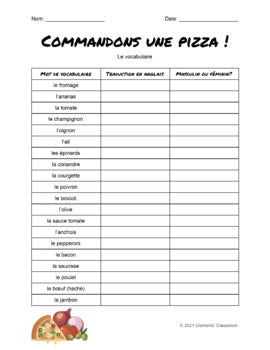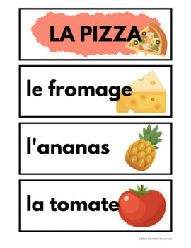 Pizza - La Pizza - French Vocabulary Activities + Word Wall