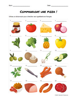 The Mur de mots (Word Wall) includes all of the vocabulary words that are in the vocabulary activity, along with an image beside each word. This can be displayed in your French classroom as a visual reference for students throughout your Pizza unit. Just print, cut, laminate, and enjoy!