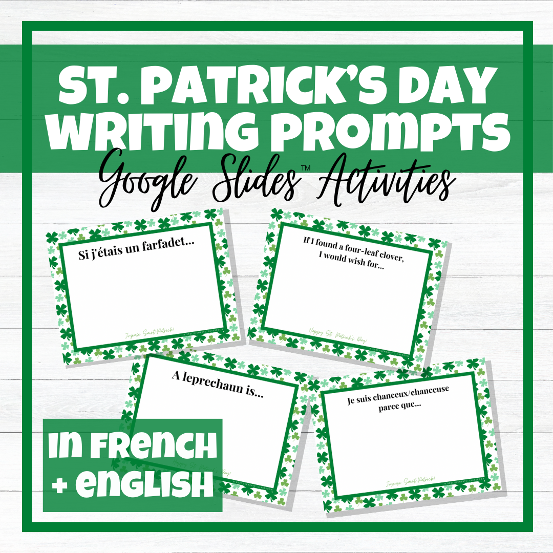 Celebrate La Saint-Patrick or St. Patrick's Day in your French and English classrooms with these Google Slides™ Writing Prompts!
