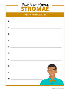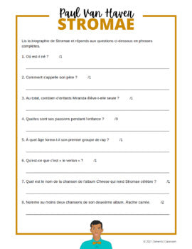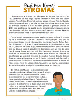This French biography resource contains informative text about the life of the famous Francophone singer Stromae, followed by a variety of activities to build upon and assess your Junior/Intermediate students' reading comprehension and writing skills.
