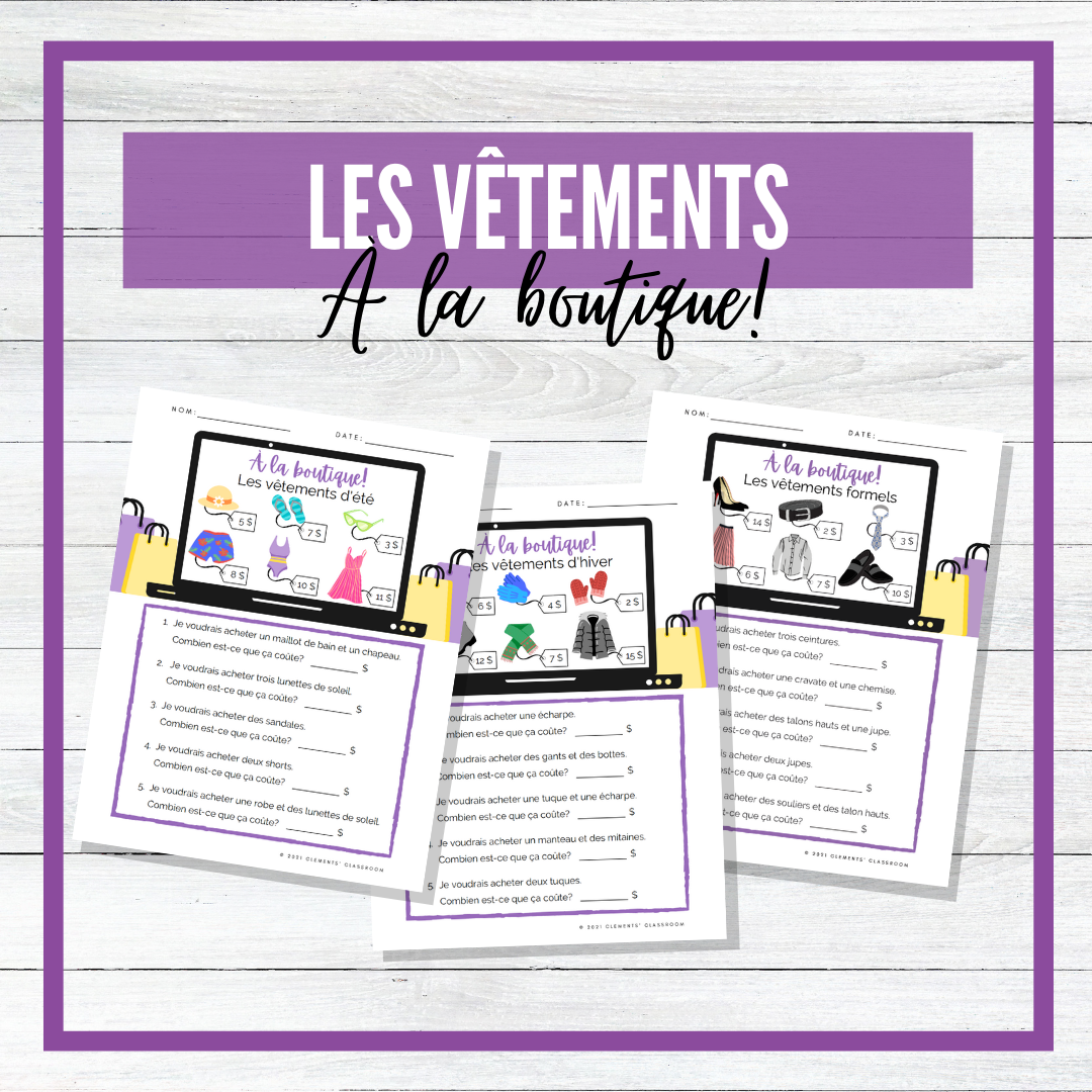 This resource is an authentic way to teach your students how to add the total cost of clothing items and use French currency, as well as assess their French vocabulary skills related to clothing items! An answer key is included to help you with grading efficiently.