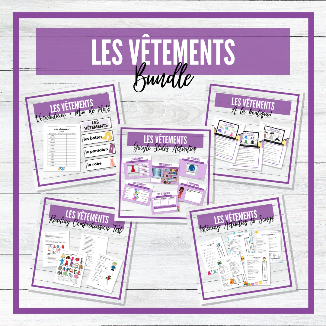 Save 15% off my French resources for a Clothing Unit when you buy this bundle! This purchase includes FIVE resources that are available individually in my store: